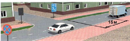 23. Ачааны автомашиныг зурагт үзүүлснээр явган хүний зам дээр зогсоохыг зөвшөөрөх үү?