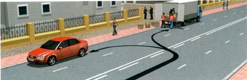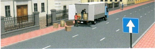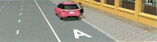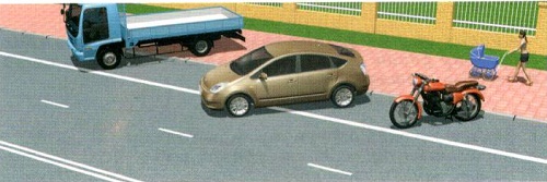 Хөвөөн дээр тээврийн хэрэгслийг ташуу байрлалаар зогсоохыг зөвшөөрөх боловч зорчих хэсэгрүү оруулсан тохиолдолд хориглоно. Мөн нэмэлт тэмдгээр тусгайлан заагаагүй бол явган хүний зам дээр зогсоохыг хориглоно. Иймд зөвхөн мотоциклийн жолооч зогсох үйлдлийг зөв гүйцэтгэжээ.