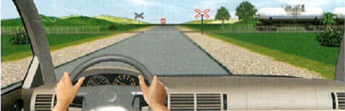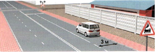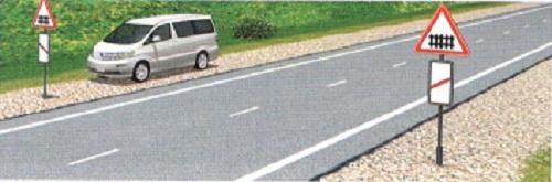 'Төмөр замын гарамд ойртоно' 1.4.в, 1.4.е /нэг зураастай/ тэмдэг нь гарам хүртэл хамгийн холдоо 100 м-т тавигдах тул үүнээс дотогш удаан зогсохыг хориглоно /ЗХД-ийн 14.9.б/.