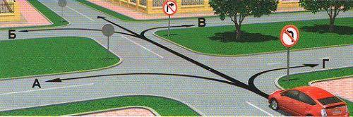 4.1.в 'Зүүн гар тийш явна' тэмдэг бүхий уулзварыг зурагт үзүүлснээр чигээрээ нэвтрэхийг хориглоно.