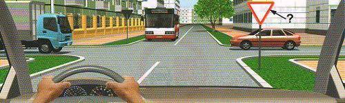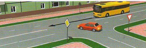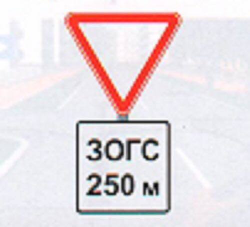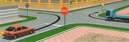 'Зам тавьж өгнө' (3.4) тэмдэг нь зам тавьж өгөх үйлдлийг тухайн уулзварын аль хэсэгт гүйцэтгэхийг жолоочид тусгайлан заахгүй бөгөөд зөвхөн уг үйлдлийг зөв гүйцэтгэхийг шаардана.Өөрөөр хэлбэл зурагт үзүүлснээр суудлын автомашины жолооч хөндлөн замаас яваа автобусны хурд болон чигийг өөрчлөхөд нөлөөлөхгүй байдлаар уулзварт орж зам тавьж өгөхийг тэмдгийн заалт зөрчсөн буюу уг үйлдлийг буруу гүйцэтгэсэн гэж үзэхгүй.