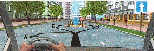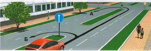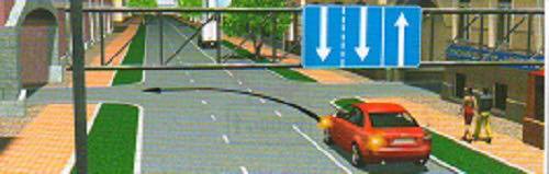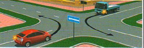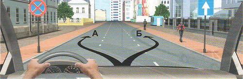 'Эгнээнээс явах хөдөлгөөний чиг' (5.10) тэмдгийн зүүн гар тийш эргэхийг зөвшөөрсөн сум бүхий эгнээнүүдийн зөвхөн хамгийн зүүн гар талын захын эгнээнээс буцаж эргэхийг зөвшөөрнө.Иймд зурагт үзүүлсэн дунд эгнээнээс зөвхөн чигээрээ буюу зүүн гар тийш эргэхийг зөвшөөрнө.