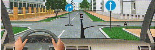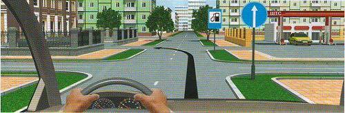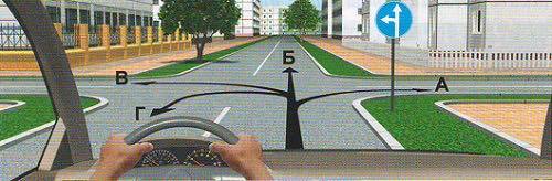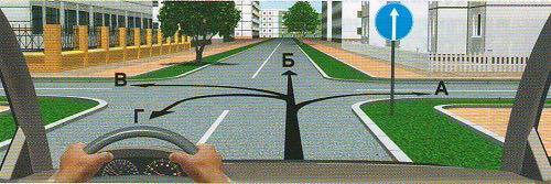 Уулзварын цаана (замын эхэнд) байрласан 4.1.а 'Чигээрээ явна' тэмдэг гарцаар баруун гар тийш эргэхийг хориглохгүй.