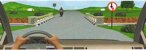 62. Энэ тохиолдолд мотоциклтой нэгэн зэрэг гүүрээр нэвтрэхийг зөвшөөрөх үү?