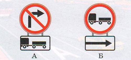 А тэмдэг нь чиргүүлтэй бүх төрлийн тээврийн хэрэгсэл баруун гар тийш эргэхийг хориглоно.Б тэмдэг нь чиргүүлтэй ачааны автомашин болон тракторын хөдөлгөөнийг хориглох бөгөөд чиргүүлтэй суудлын автомашинд хамаарахгүй.