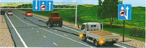 97. Зурагт үзүүлсэн бүх жин нь 3.5 тонноос бага ачааны автомашины жолооч гүйцэх зорилгоор дунд эгнээнд орохыг зөвшөөрөх үү?