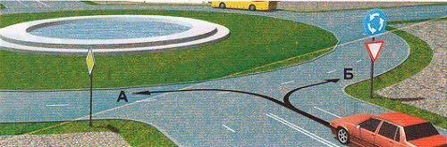 Уулзварын шууд өмнө байрласан 4.1.а 'Чигээрээ явна' тэмдэг нь зөвхөн тэр уулзвартаа хамаарна. Иймд уулзварыг чигээрээ нэвтэрсний дараа зүүн гар тийш эргэхийг хориглохгүй.