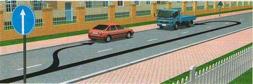 Замын аюул бүхий хэсэгт зохицсон арга хэмжээг урьдчилан авах боломжийг жолоочид хангах үүднээс анхааруулах тэмдгийг тухайн аюул бүхий хэсгийн өмнө тодорхой зайд байрлуулдаг.Иймд жолооч анхааруулах тэмдгийг харсан үеэсээ эхлэн тухайн аюул бүхий хэсэгт зохицсон арга хэмжээг авч эхлэх шаардлагатай.Тухайлбал зурагт үзүүлсэн замын энэ хэсгээс эхлэн та хурдаа хасаж урд яваа тээврийн хэрэгслээс хоорондын зайгаа, өөдөөс яваа тээврийн хэрэгслээс хажуугийн зайгаа аль болох их байхаар барьж, хайрга чулуу үсэрч болзошгүй аюулаас сэргийлэх арга хэмжээг урьдчилан авч эхлэх шаардлагатай.