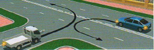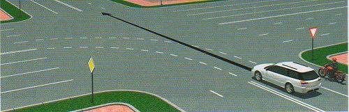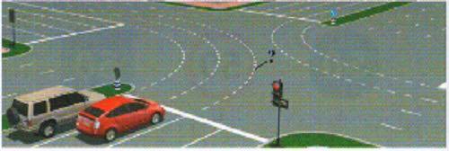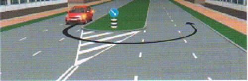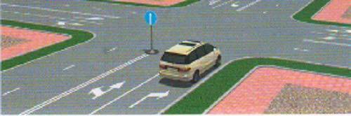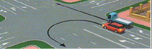 'Чиг заагч сум' (1.17) тэмдэглэлээр зүүн гар тийш эргэхийг зөвшөөрсөн эгнээнүүдийн зөвхөн хамгийн зүүн гар талын захын эгнээнээс буцаж эргэхийг зөвшөөрнө. Иймд зурагт үзүүлсэн дунд эгнээнээс суудлын автомашин буцаж эргэхийг хориглоно.Ачааны автомашин тухайн эгнээнээс зөвхөн баруун гар тийш эргэх шаардлагатай бөгөөд чигээрээ явахыг хориглоно.