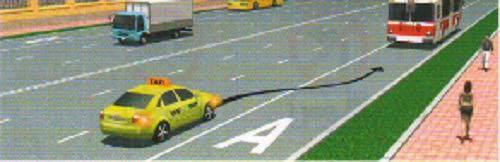 Чиглэлийн тээврийн хэрэгслийн эгнээгээр суудлын такси явахыг зөвшөөрөх (ЗХД-ийн 11.10) боловч зурагт үзүүлснээр үргэлжилсэн шугаман тэмдэглэл (1.1) давж орохыг хориглоно.